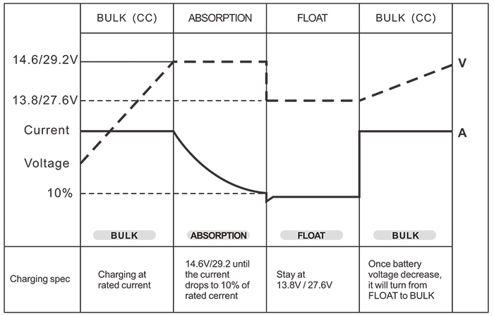 Accubediening (3-traps acculaders) Bulk / Absorptie / Vlotter