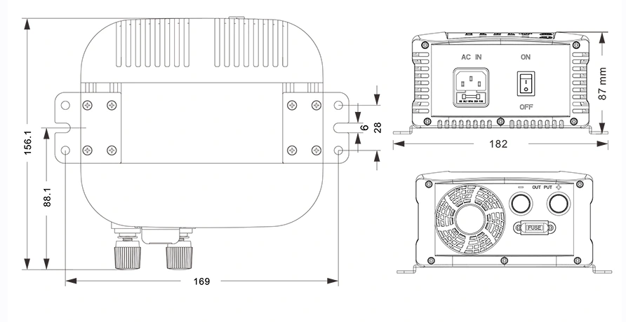 Mechanische tekeningen: (156,1 x 182 x 87 mm)