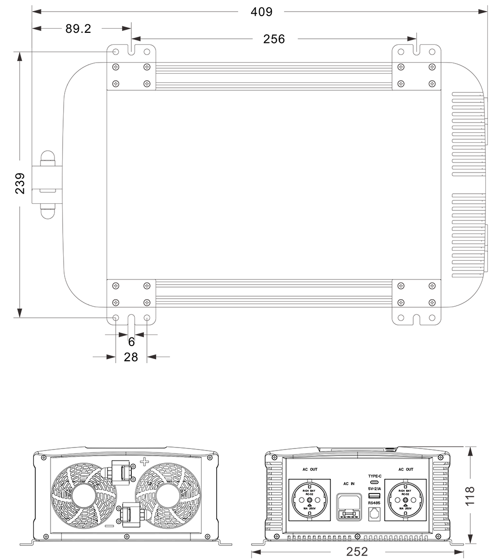 Mechanische tekeningen: (409x252x118 mm mm)