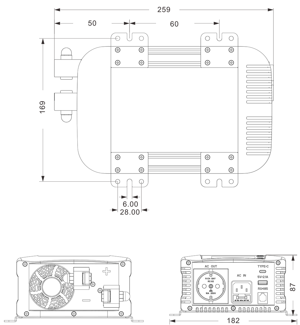Mechanische tekeningen: (259x182x87mm)